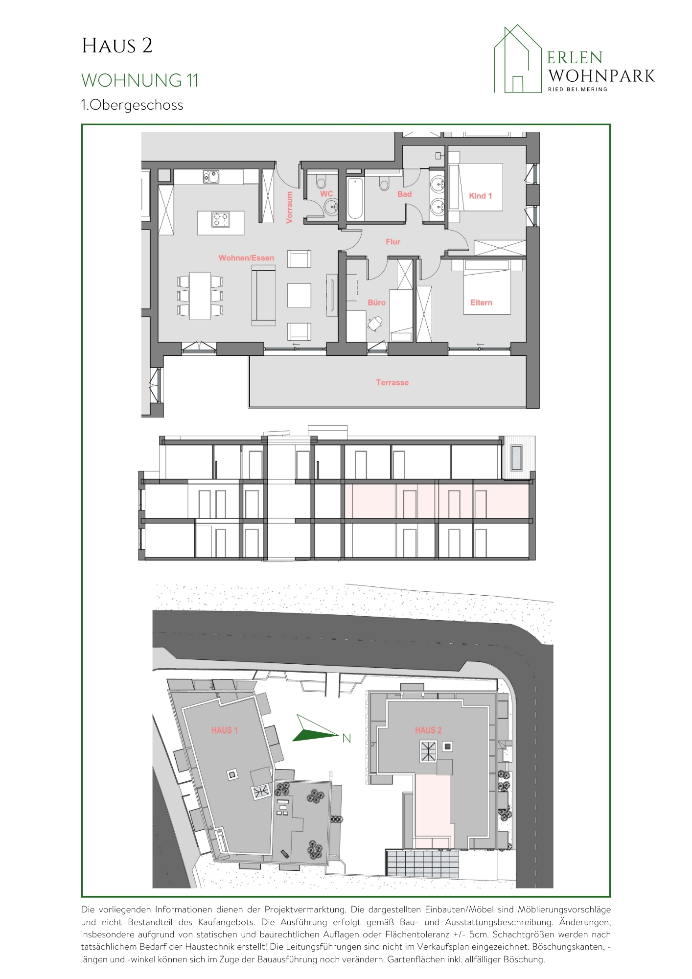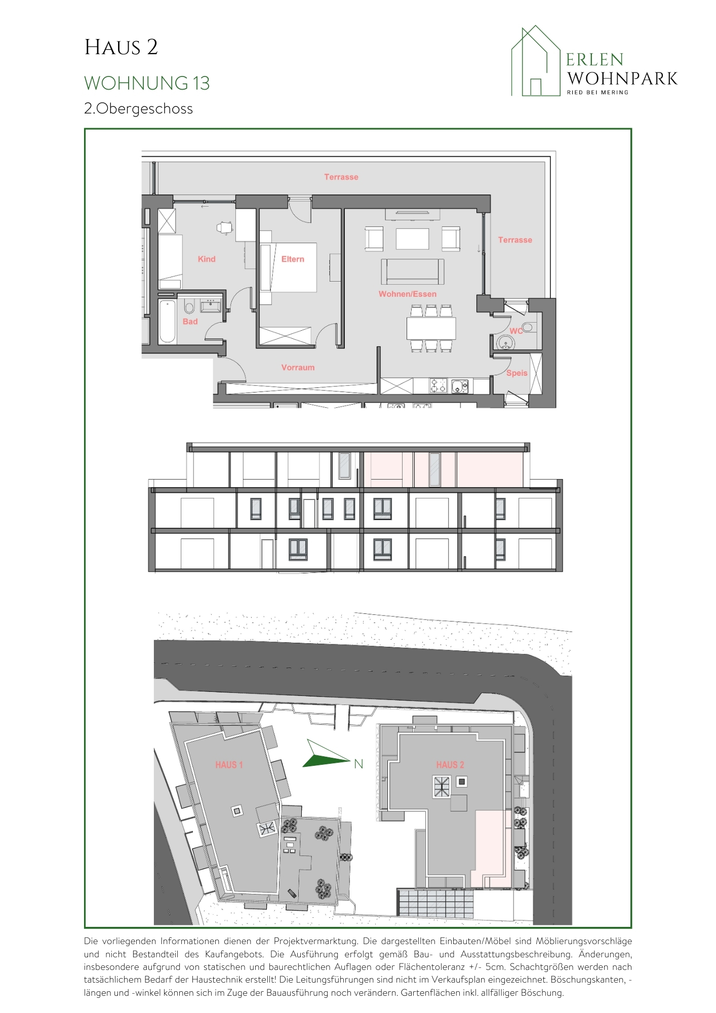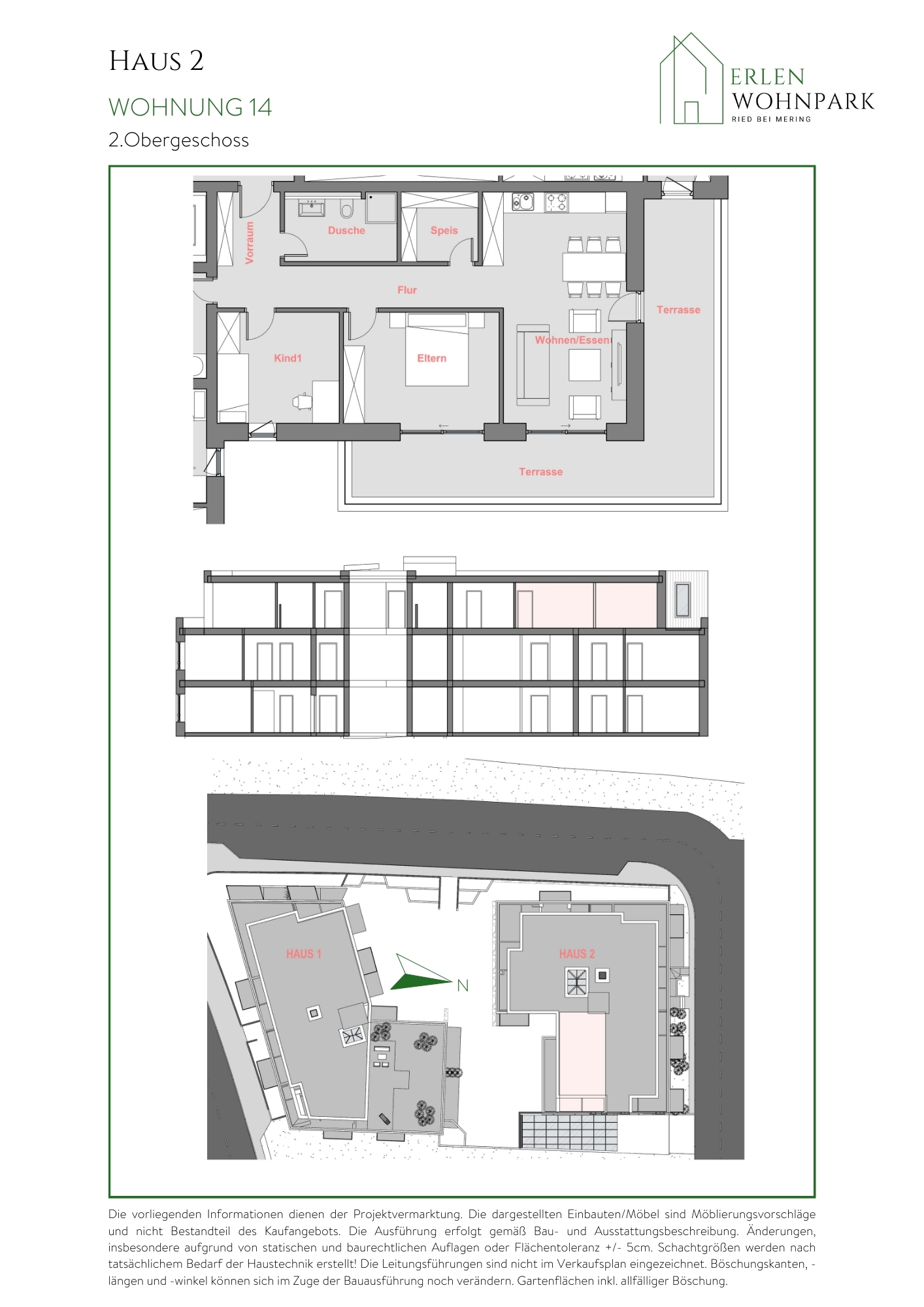 Entdecken Sie diese familienfreundliche Neubauwohnung die sich über 2 Ebenen erstreckt. Mit Wohnraum, Schlafzimmer, Kinderzimmer, Bad, Balkon und Terrasse – hier fühlen sich alle wohl.