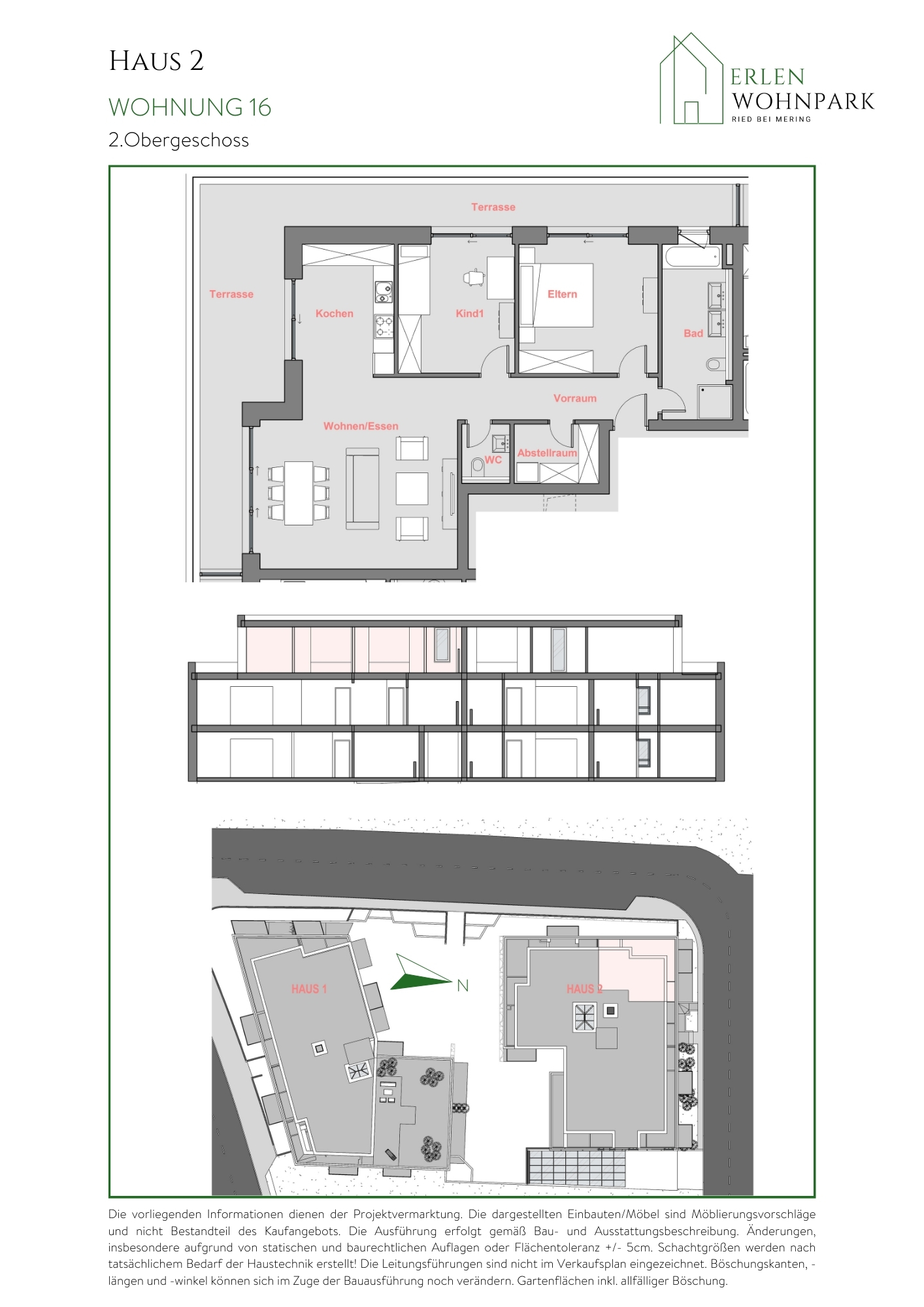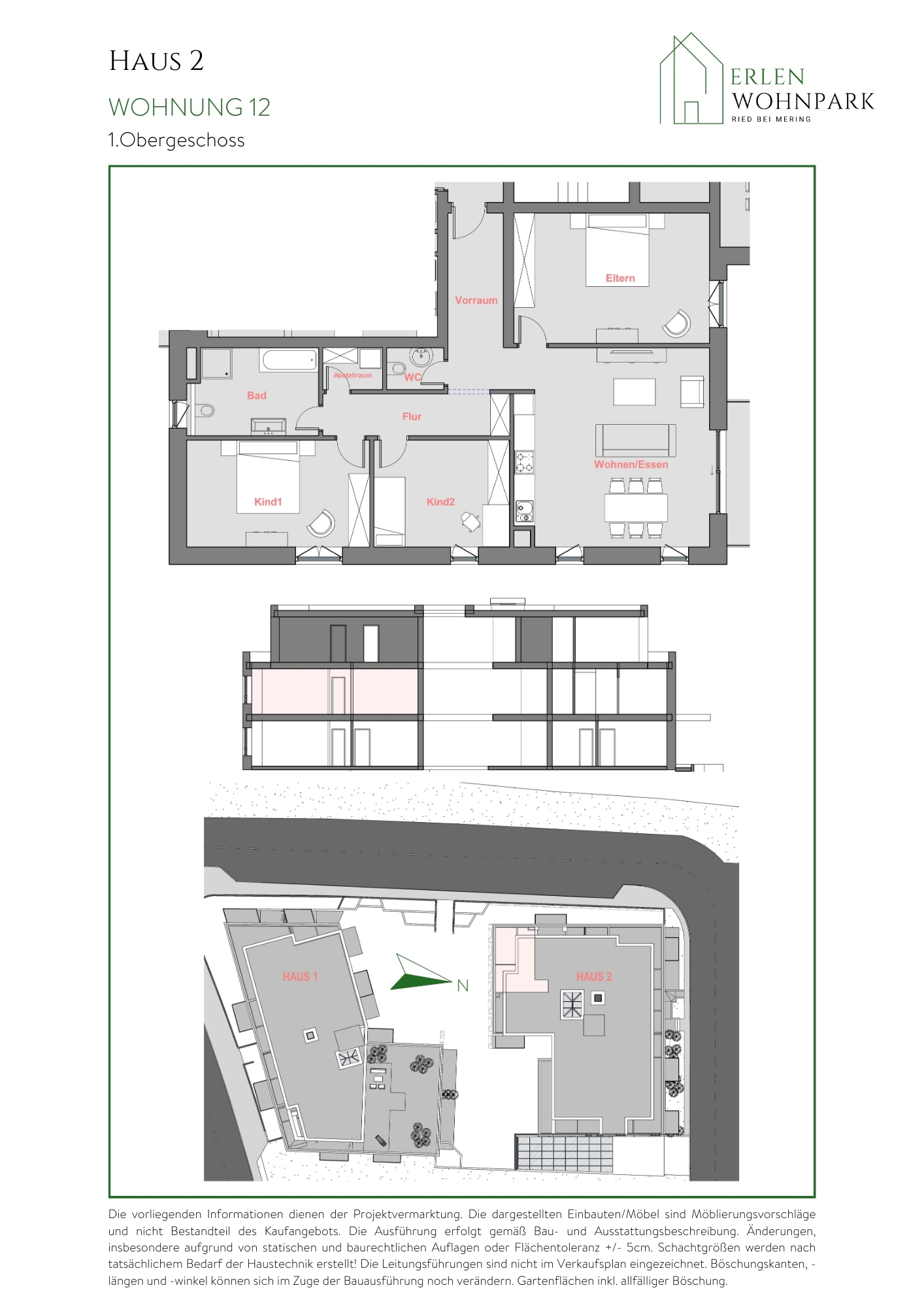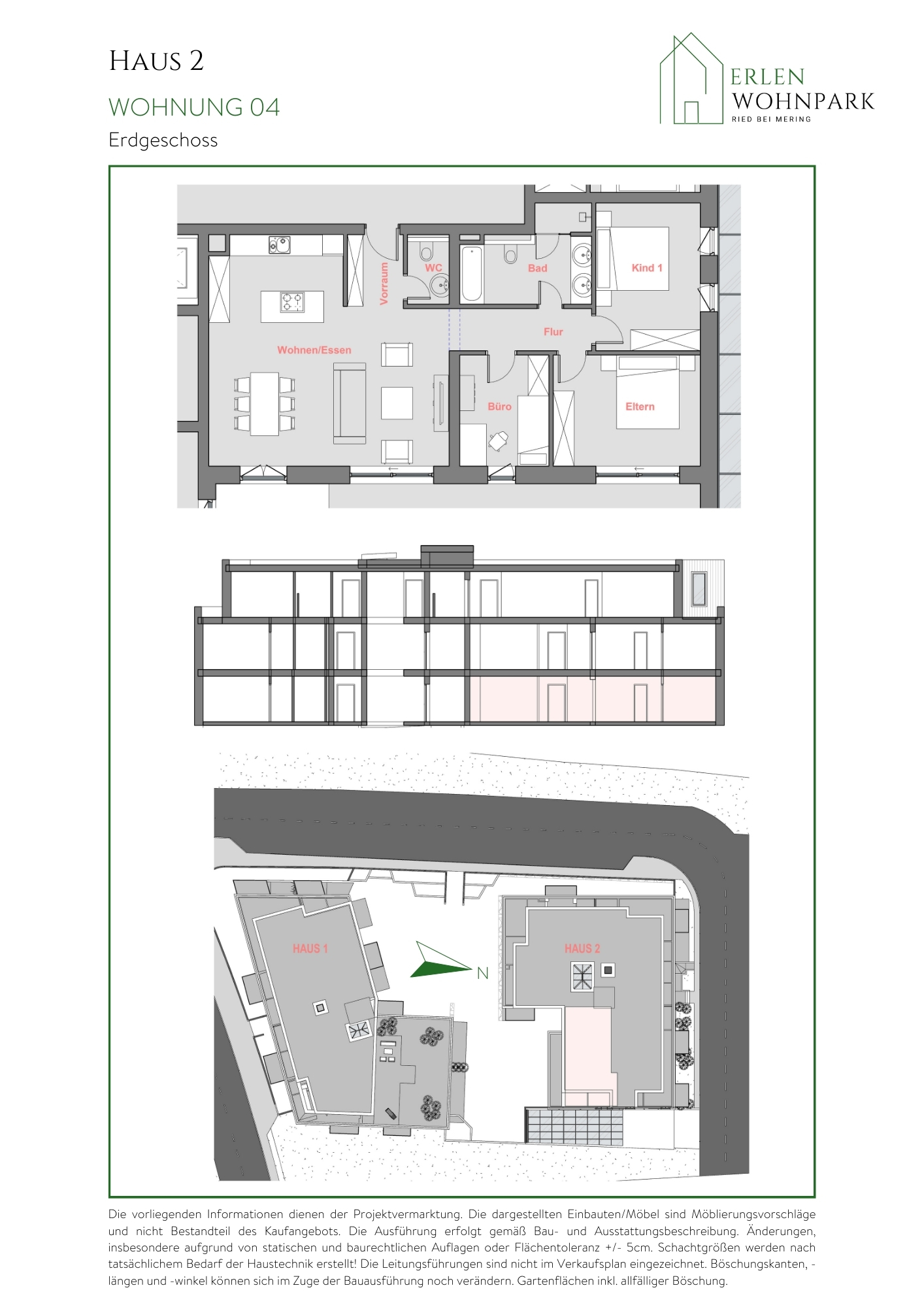 Entdecken Sie diese familienfreundliche Neubauwohnung die sich über 2 Ebenen erstreckt. Mit Wohnraum, Schlafzimmer, Kinderzimmer, Bad, Balkon und Terrasse – hier fühlen sich alle wohl.